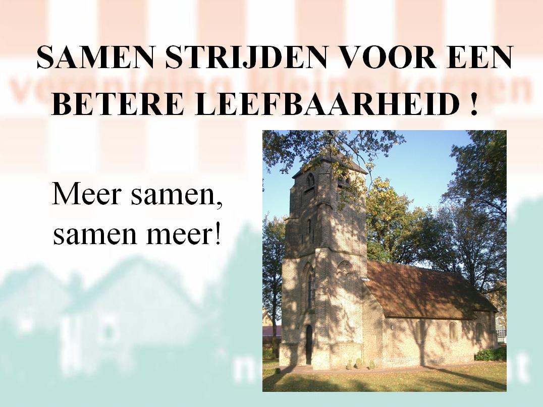 Na de pauze werden kort de overige werkgroepen, Voorzieningen, Veiligheid & Verkeer en Speeltuintjes, en hun activiteiten toegelicht. De werkgroep Communicatie presenteerde een eerste versie van deze website.