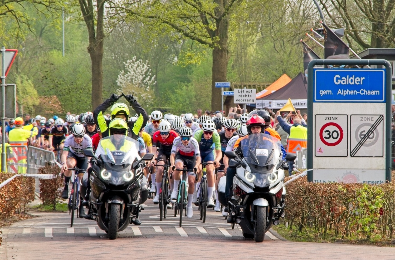 Het parcours sluit een deel van Galder af. Er is kruisend verkeer mogelijk via de Sint Jacobsstraat vanaf de zuidkant, en via de Kerselseweg-Rijsbergsebaan. Je moet dan wel even wachten tot de wielrenners voorbij zijn. Volg de aanwijzingen van de verkeersregelaars.
