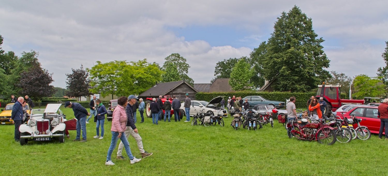 Zoals bij alle gehouden edities werd de Rommelmarkt weer gecombineerd met een treffen van bezitters van een variatie aan oldtimers: auto’s, brom- en motorfietsen en tracktors. De oldtimers stonden bij elkaar op het grasveld tegenover De Leeuwerik. Voor de bezitters was het onderling heel gezellig. Maar ook voor de bezoekers van de Rommelmarkt was het leuk om te zien en een praatje te maken. In de ochtend stond het veld halfvol. Vroeg in de middag kwam nog een hele stoet oldtimers binnen. Zoals een trekker met aanhanger, met daarop een oude BMW en brommer. En een stel die allebei een Porsche reden.